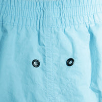 Aqua blue classic swim shorts designed with a regular fit, straight hem, mid-thigh leg, and inner breathable lining for comfort and support. Crafted from light, quick-drying fabric engineered from Econyl®️ — a nylon fiber repurposed from landfill and ocean waste. Subtly embroidered with the signature TT.