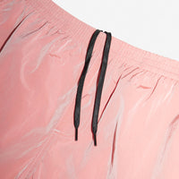 Iridescent Pink Classic Swim Shorts. Designed with a regular fit, straight hem, mid-thigh leg, and inner breathable lining for comfort and support. Crafted from quick-drying paper nylon made of Econyl®️, a nylon fiber repurposed from landfill and ocean waste.