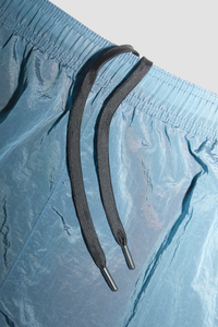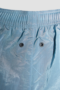 TRUE TRIBE’s versatile shorts are made for roaming on land or floating at sea. Designed in an iridescent light blue sheen.