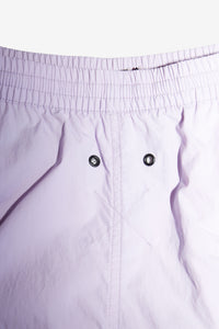 Lavender classic swim shorts designed with a regular fit, straight hem, mid-thigh leg, and inner breathable lining for comfort and support. Crafted from light, quick-drying fabric engineered from Econyl®️, a nylon fiber repurposed from landfill and ocean waste.